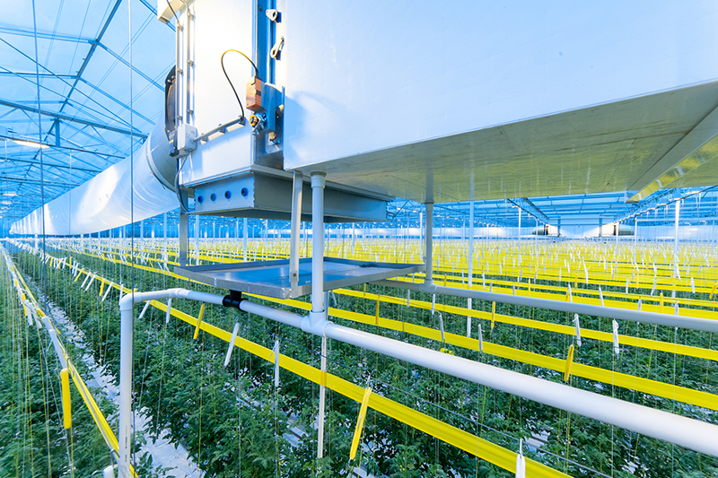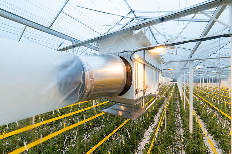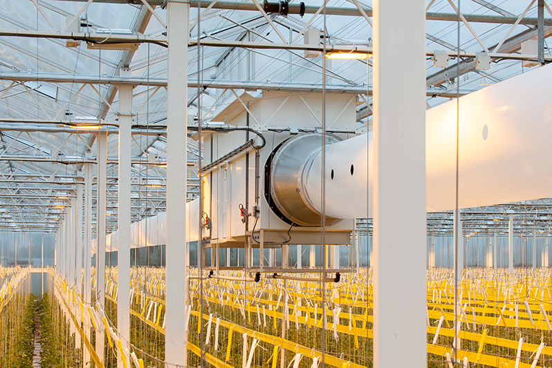 Bij Tomatenkwekerij Van der Belt installeerde Technokas zeer recent Het Nieuwe Telen met luchtbehandelingskasten die buitenlucht via het dek aanzuigen.